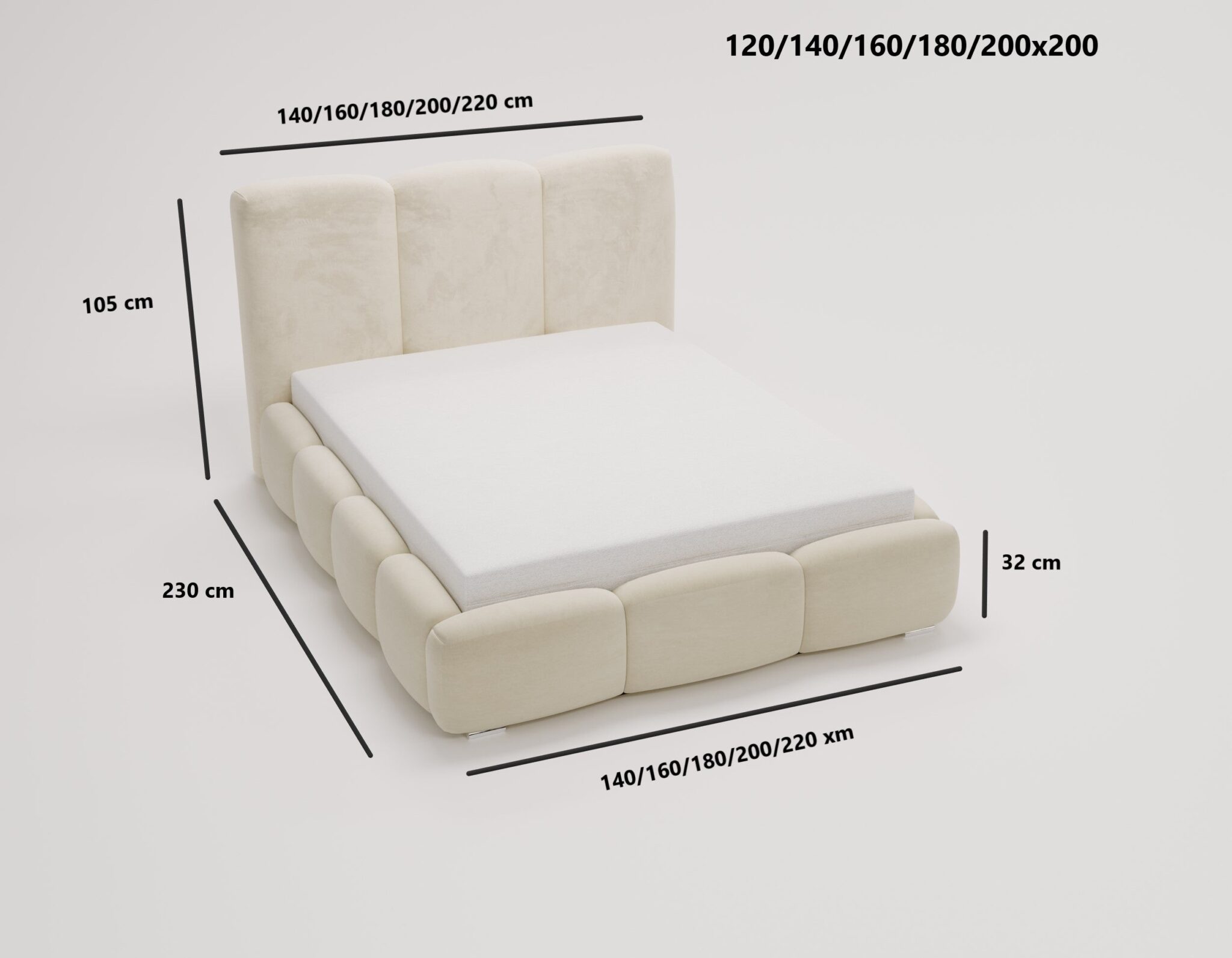 Björknatt är en säng som kombinerar form och funktion på ett sätt som känns både samtida och drömskt. Med sin karaktäristiska ”bubbliga” siluett, skapad av generöst stoppad skum, får sängen en mjuk och skulptural framtoning som ger sovrummet en elegant men avslappnad känsla.