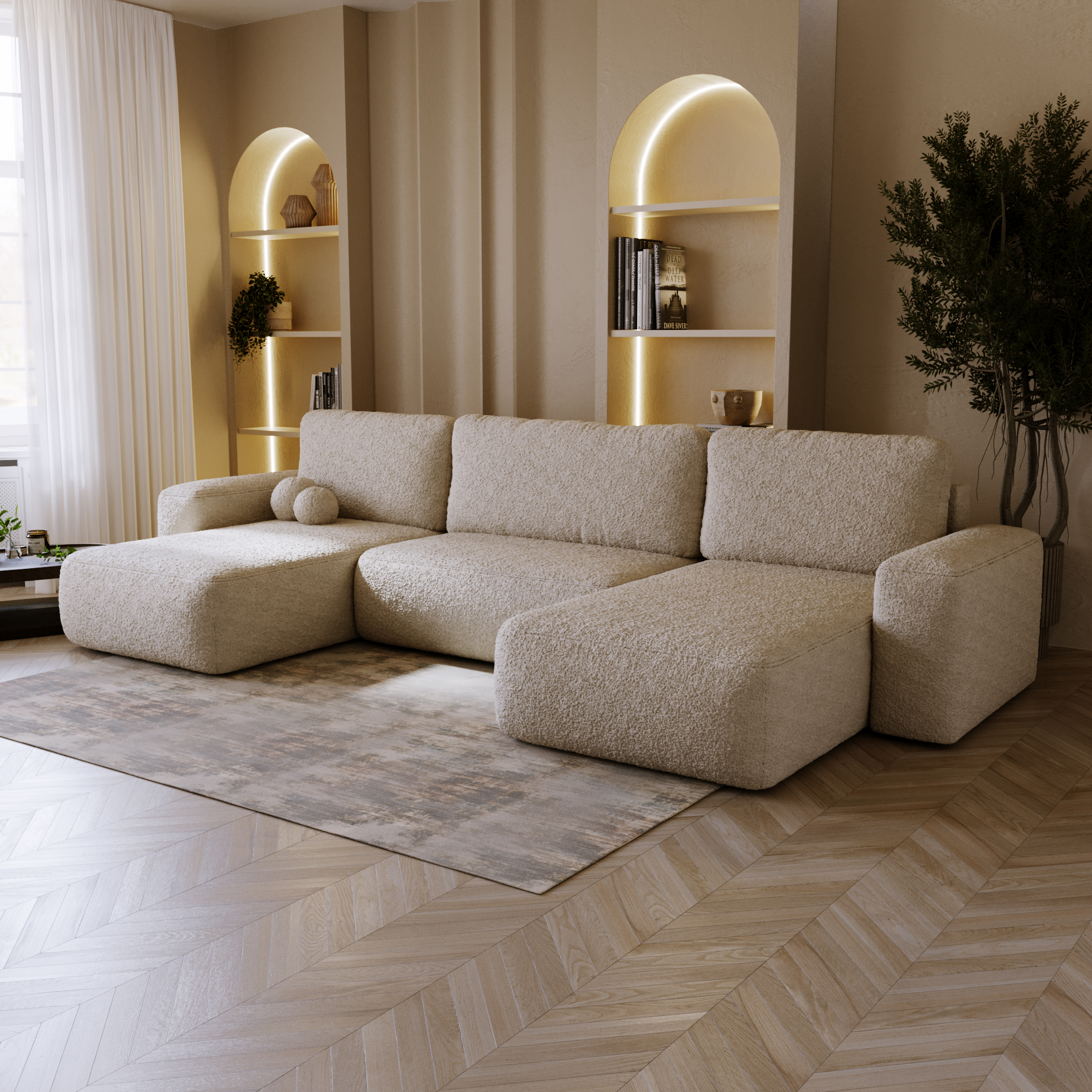 Briset är en hörnsoffa med en bäddfunktion, vilket gör den både praktisk och bekväm. Den minimalistiska och eleganta designen passar perfekt i alla typer av vardagsrum. Med sin enkla form och stiliga detaljer blir den ett centralt inslag i rummet. Sitsen och ryggstödet är tillverkade med T30-skum och vågfjädrar, vilket ger både långvarig hållbarhet och enastående komfort.
